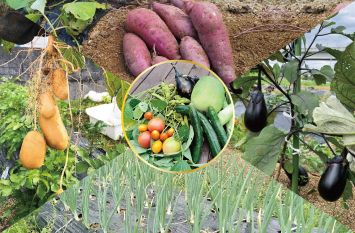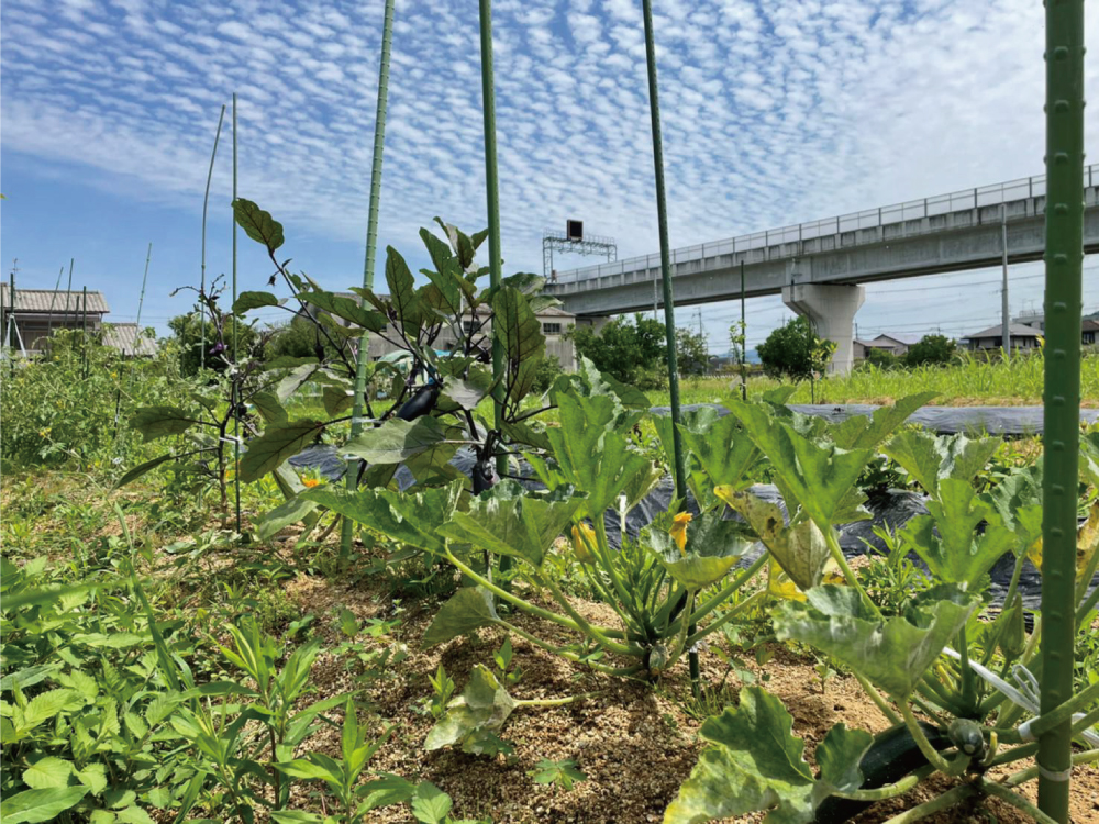 トマトやキュウリ、ピーマンなどの身近な季節の野菜を畑で作っています。