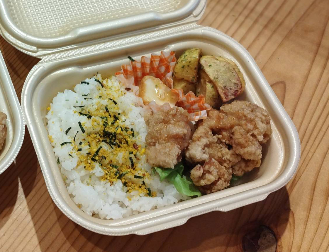 内容:白米 / 唐揚げ3個 / フライドポテト / 副菜1品